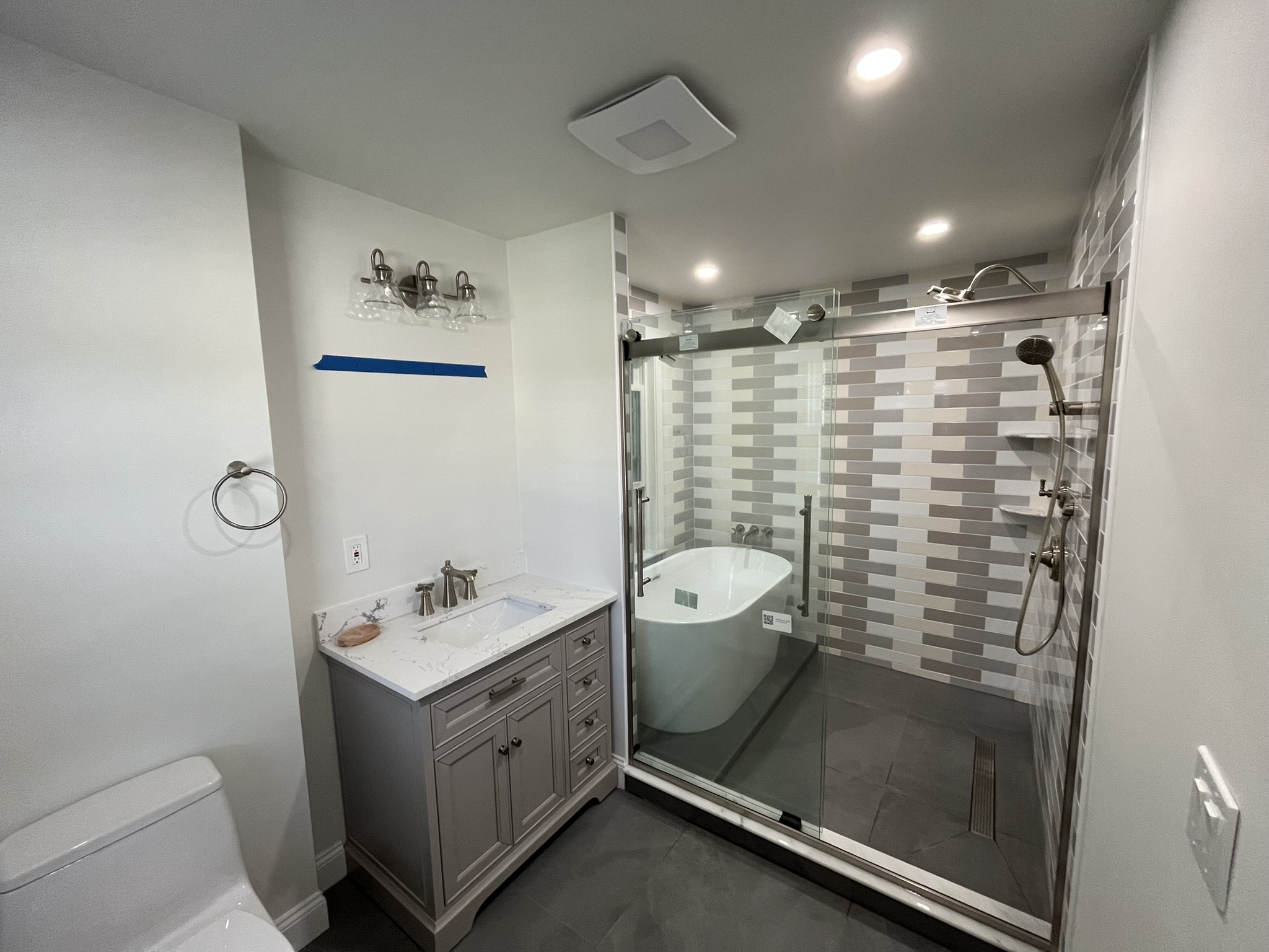 Sun Shore Construction transformed a bathroom in Watertown, MA, with a modern walk-in shower, updated plumbing and electrical systems, new flooring, and elegant finishes. This renovation brought both function and comfort together, creating a refreshed space for everyday living.
