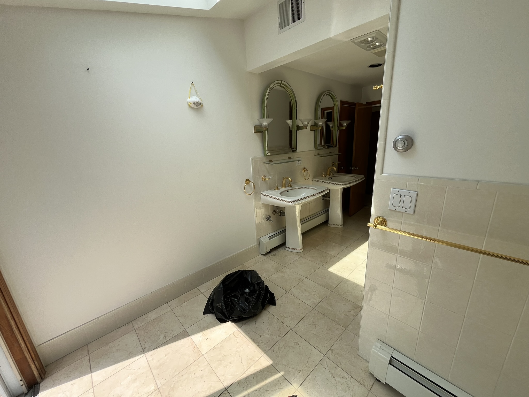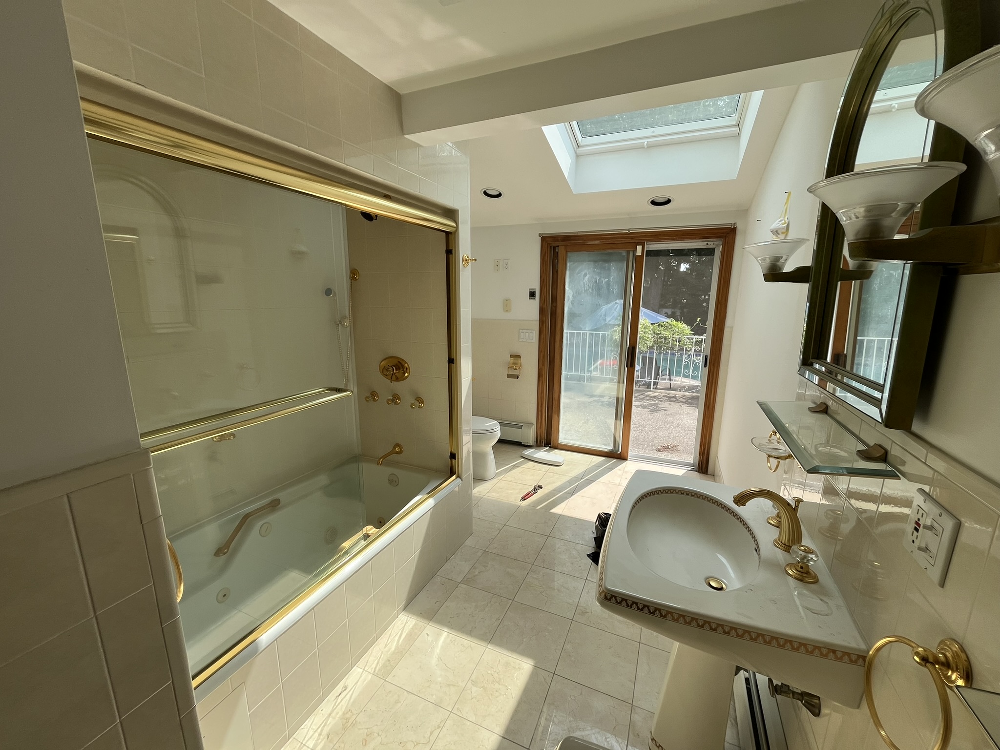 This Newton bathroom remodeling project began with a complete demolition of the old fixtures, tiles, and partition walls in both bathrooms. By stripping the space to its framework, we were able to create a brand-new layout designed for better flow and modern aesthetics. The divider walls were removed to open up the space while preserving the structural bearing wall for safety.
