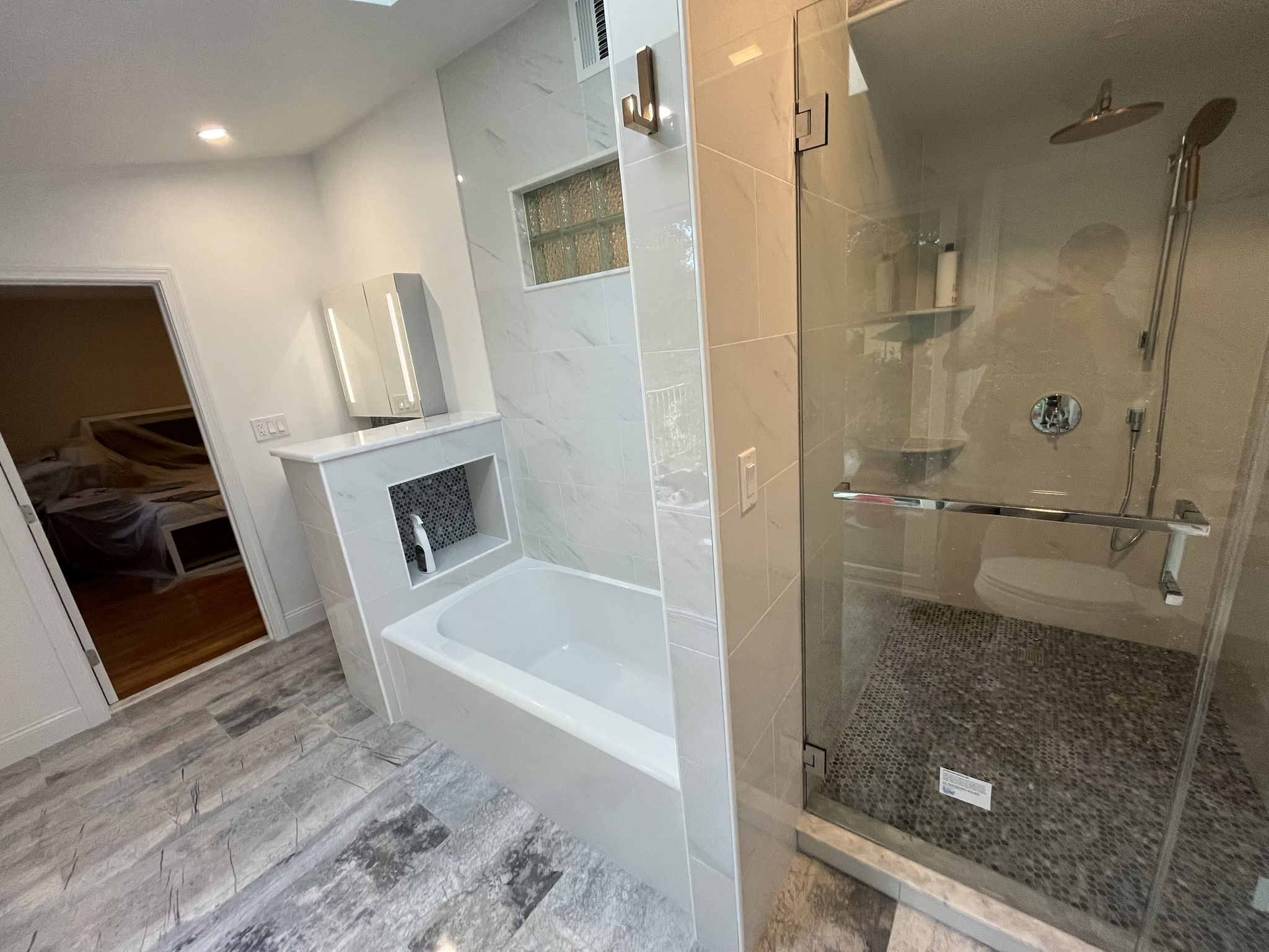 This project showcases Sun Shore Construction’s expertise in comprehensive bathroom remodeling — from demolition and reconfiguration to the final polish — all while maintaining a meticulous focus on craftsmanship, efficiency, and design harmony.